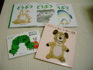読み聞かせ・・というのにはまだまだ早いけれど、最近おなかに向かって絵本を読んであげています。昨日は寝る前にパパさんが読んでくれました。 「いないいないばあ」は評判がいいと見聞きしていたのでぜったいに買いたかった1冊。買ってみたらあまりに絵がキュートで、私が気に入っちゃいました。配色の素敵なものにも触れさせたいなーと仕事柄思っていたので、そのあたりは、まず「はらぺこあおむし」を購入してみました。本のつくりがおもしろいので、意外にもパパさんが楽しんでました。読んであげている時はちゃんと聞いているからなのかとってもおとなしくしているベビちゃん。でも、書店をフラフラしてあれこれ立ち読みしている時や、どの絵本にしようかなぁ?なんて選んでいる時なんかはポコポコドコドコよ~く動くんです。本が好きなのかな??そう言えば、忘れもしない初めての胎動も本屋さんを出た直後でした。