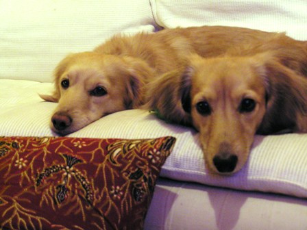 『また、写真ですかぁ~~・・・?!』べーちゃん(左)はとても嫌そうに写っています(笑) ワン:『ママ!忙しいのは分かったけど!お散歩は忘れないでヨォ~~!!!』 ママ:『ハイ、ハイ♪お散歩だけはちゃんと忘れないヨォ~♪』
