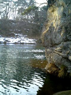 はいっ、では旅の続きを。マグロにさよならした私たちは次なる場所へ。目指すは一関の厳美渓塩釜を出てから高速に乗れない。ひたすら高速を目指し、泉I.Cまで。その間結構時間かかったぁ。父の「じゃーねー」が忘れられず、爆笑する私。父、失礼でごめんなさい。そんなこんなで高速に乗ってみる。意外と車少ないから快適、快適。前にも書いたけど、途中で彼が眠くなってきたというので、S.Aで運転交代。なんでも、父と会った疲れもあるが、雲が眠気を誘うとのこと。なんのこっちゃ。いい天気じゃん。車気持ちいいじゃん!最初は緊張しながらも、車の癖に慣れると一気にぶっ飛ばす私。ドライブ大好き☆久しぶりのメガネが知的な女を演出(そんなわけはないf-_-;)隣で寝る彼。CDと熱唱する私に気づかず、ひたすら寝てたよ。よっぽどだったんだなぁ。で、塩釜から1時間半くらいで厳美渓に到着。人気(ひとけ)がない。通り過ぎるのはバスマニアの間では貴重という岩手交通のバスたち。無料駐車場に車を止めて、徒歩2分。現場に到着。ここが厳美渓川に近づいてみると、写真ではよくわかんないけど、水がきれい。春は春でキレイみたいだけど、雪の解け具合が、なんともいえない風情ある景色。うんうん。自然ってすごい。なかなかの芸術ですよ。途中危険をおかして岩に登ってみたりしたけど、やっぱりキレイ。空気もおいしい。再び道路に戻ったら、立ち入り禁止って書いてあった。私たちが入ったところはなんだったのだろう。間違いなくなんもなかったのに。「私にはやっぱりこういう場所が似合っている気がする。」とふと思う。そして自然も好きだけど、食い気がムラムラ出てきたので、有名らしい団子屋さんへ。五個の団子があるからいつくしだんごというそうだ。団子がもちもちしていてとってもおいしい(^^)しょうゆはちょっとしょっぱめ。甘みが少ない。あんこは自家製。おばあちゃんのことを思い出す。ゴマは・・・おはぐろになったけどおいしかった☆近くにはゆのはまランド(地元のもと遊園地)をほうふつとさせるガラス館が・・・行かなかったけど、カラフルだったよ。景観にそぐわない気がする。団子でちょっと満足したところで、次に向かうは盛岡・・・のはずが、彼のちょっとしたわがままにより、平泉へ。行き先は高館・義経堂。義経っていうのに、芭蕉の話をしだす。私には何のことやら。彼は歴史が好きだし、職業が職業だけに見ておきたいらしく、行ってみることに。ナビには道が乗ってないので勘で行く。到着。そこは、この季節は拝観料を払わなくてもいい施設???だった。こちら「夏草や 兵どもが 夢のあと」確かに芭蕉。義経堂そこから望む北上川彼ものすごく感動してる。芭蕉と同じ場所をたどったって。そして句碑を読んでみる。授業でやったことのある文章だ。「国破れて山河あり・・・」芭蕉もここをたどったんだなぁってしみじみ思ってみた。景色はきれいだったけど、歴史が苦手な私には彼ほどの感動はあまりなかったなぁ。彼とつきあってから、歴史ある場所にはかなり行ってる気がする。だからといって歴史が得意になるわけではないけど(;;)私は毎回この手のことになると反応が薄いらしいが、得意そうに歴史を語り、子どもみたいにはしゃぐ彼を見てるとおもしろいのでよいことにした。さて、いよいよ盛岡へ。