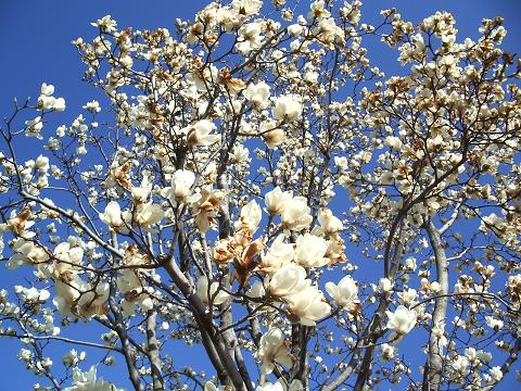 朝6時目覚めコーヒードリップをセットしてカイとお散歩に出た後に昨晩の「グランシェフ」のテイクアウトしたピザをチンしてコーヒーをすすりながら食べる。豪華朝食だ!そして7時前に住民センターに到着カイ監督も同伴、塵出しの指導員。住民センターは庭が広いからボールを投げるとカイは走って拾ってくる。ハアハアーと言ってるが今朝の息は白くならないほど暖かい往復20回の運動会。いつもの家の裏の公園~更に北側30m付近にある公園では桜が満開。先日まで青空が枝から見えてたのにネ、開花率100%おかしいねまだ当地の気象台○○支局は「開花宣言」出してない!これはもしかして「そめいよしの」ちゃんではないのかも?木蓮も白赤両咲き車から桜みえるのかね?今日も「名犬牧場」で遊んでシャワーで綺麗になって帰りました。胸の毛も白くなったね。