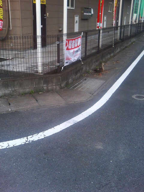 今朝は涼しかった。これが続けばと思っていたが直ぐに裏切られた。10時ごろにはもう熱くって暑くって痩せそうこの写真、今朝のことなぜか1匹だけ?よく飛べないようです。カイに驚かせないように「ゆっくりゆっくり歩くんだよ」と言いながらパチリ撮れた。居たよ、親鴨心配そうにつかず離れず見守っているようだ。この辺りにも「野良猫ちゃん」居るから気をつけないと。車も通るしね、・・・と思いながら、そのままそっと後にした。カイは判っていたけど、吠えなかったし走り出す素振も無かった。明日の朝はもう合えないだろうネ鴨鍋になってなければ良いが。昨日はおじさん地方にも「光化学スモッグ注意報」が出た。おじさん地方が原因ではない今、日本が光化学スモッグになる原因は全て中国の影響です。皆さんも中国産にはご注意下さい。保障は絶対ありません。 明日も暑いらしい。雨が降ったら今度は「酸性雨」になるでしょうね。皆さん頭部にご注意くださいネ。