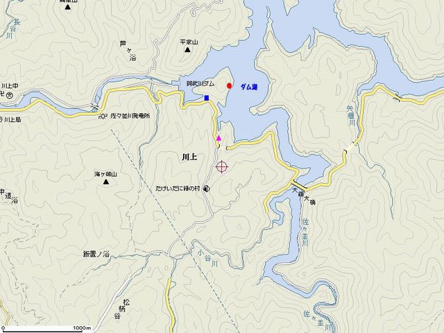 赤い●がかりんが落下したおおよその地点です。ピンクの▲でかりんの【声の塊】が届きました。青の■は明神島グラウンドです。かりんが救助されたら写真を撮ろうと思っていたのですが、かりんの顔を見たら冷静ではおられず、結局携帯で撮った写真は、救助のプロが使う【ロープ】でした。見るからに重そうなロープでした。下に見える薄い水色の部分がダム湖です。