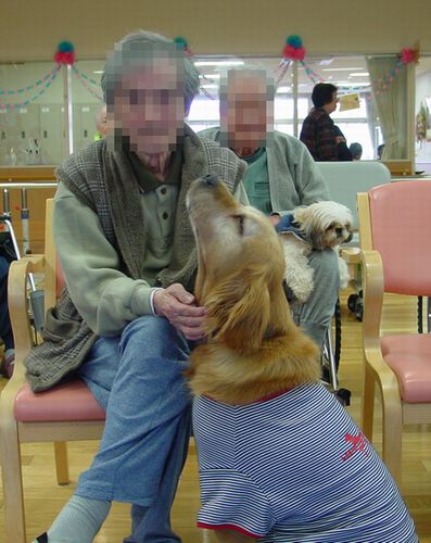 おはようございます!昨夜は夕食+発泡酒1本を済ませた途端眠気に襲われ、目が覚めたら早朝の午前4時半でした。早朝からの犬のお風呂、午後からのふれあい訪問、夕方からの警察犬の訓練・・・・・さすがに疲れました。今年最初の訪問施設【グリーンヒル美祢】では、介護士さんたちも巻き込み、大変楽しい時間が過ごせたと思っています。【これこそ自画自賛!】参加した犬たちも各々の味を充分発揮してくれました。みんな素晴らしい才能豊かなセラピー犬です。次回の【グリーンヒル美祢】への訪問は3月20日に決まりました。美祢市近郊の小型のワンちゃんたちの参加があればと思っています。犬と一緒に素晴らしい笑顔に会いに行きませんか!さくらはそっとお年寄りに寄り添います。見事としか言いようがありません。さくらの優しさが見えてきます。後ろに写っているのは、セラピー参加歴9年目のシーちゃんです。まだまだやんちゃなくみさんですが、今回の訪問では大人しく抱っこされていました。1歳を過ぎて少しは良い子になってきたように思います。しかし我が家ではできる小芸は・・・やはり訪問施設では何一つできませんでした。後姿のなっちゃんです。本当に穏やかなシーズーです。お年寄りのお膝の上で【好き好き攻撃】繰り返していました。