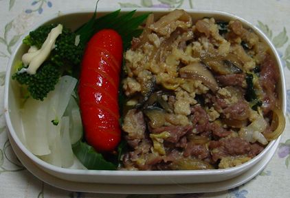 旦那さまは料理上手です。和食から洋食から、そして自己流にアレンジしたベトナム料理まで!何でも旦那さまは作ってしまいます。味も盛り付けも下手な料理人よりも上手だと私は思います。幼い頃より、外で働く青森のお母様の変わりに、料理を作っていたと言いますから、かなり年季の入った、料理人だと思います。その旦那さまが今朝早くキッチンに立っていました。何やら朝早くから食欲をそそる良い匂いがしていました。実は昨夜旦那さまに、【明日のおかあちゃんのお弁当お願いね~】って、あらん限りの猫なで声で頼んでおいたのです。そうしたらしっかり早起きをして、母のお弁当を作ってくれたのです。何を隠そう、私は自他共に認める究極の【料理音痴】です。犬たちの食事作りには自信があるのですが、肝心の人の為の料理は、味が濃かったり薄かったり・・・・情けない限りです。20回に1回位の割合で、たまに料理が上手にできると、旦那さまから【やっと料理に目覚めたか?!】といわれる次第です。その料理上手の旦那さまが作った、母の為のお弁当をご披露しようと思います。大きく見えるお弁当箱ですが、本当はかなり小さい物です。この小さいお弁当箱に、綺麗に盛り付けることなど私にはできません。