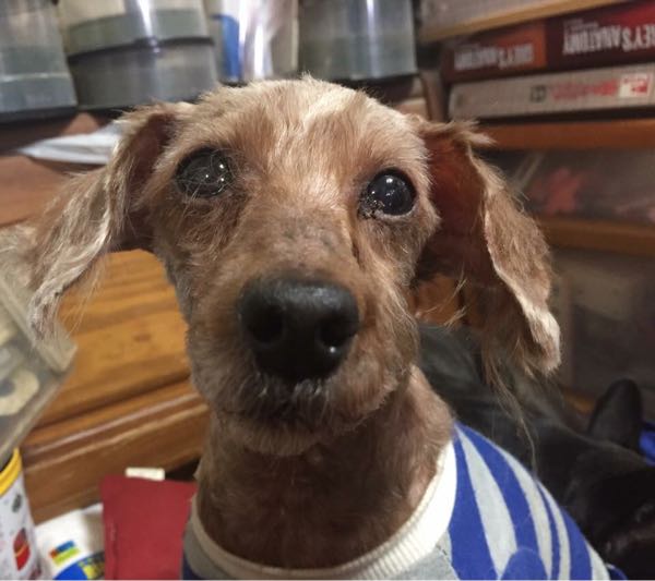 鍵姉さん(年齢不詳)。私の手技でカットしました。もちろんマルガリータカットです(笑)。トリマーさんによる、犬たちの全身美容代金四千円は高いです。我が家の長毛種のトリマーさんは私です。春になれば、お外に出かけられるくらい、またクルクル毛は伸びてくるでしょう。 年齢不詳の鍵姉さん。耳が遠くなりました。目も白く濁ってきました。10歳越えは間違いないようです。