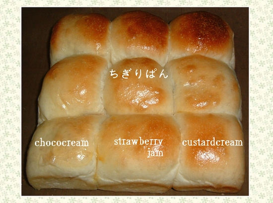 昨日は暗い日記でおわちゃってすいませんでしたぁ^^今日は午前中にうちのワンコ達のフィラリアのお薬もらいに動物病院に行ってきました動物病院っていつ行っても混んでる気がするんですよね~そんだけ沢山の人がペットを飼ってるんやぁって実感する瞬間かもま~うちにも4匹いてるんですけどね(笑)午前中はバタバタしてたけどお昼からはちゃっかりパン焼きしました♪こっこママさんのとこで見てからずっと作りたかったちぎりぱん!角型も発見したしね(笑)フィリングにはチョコクリーム&カスタードクリーム&イチゴジャムの3種類最近は甘~いパンばっかり食べてるなぁブーになれへんように気をつけないと(*´∀`*)ワンクリックお願いします今うちの子はエアコンの1番あたる場所で爆睡中
