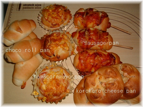 3連休2日目の今日もパン焼いてま~すほんまどこにも行く予定がないってのは正直寂しい・・・^^;パパは朝からお祭りの準備で出かけちゃったので私はお家でワンコ達とのんびりパン焼きながら読書たまにはゆっくりと過ごすのもいいかも(笑)きっと日中はどこに出かけても人・人・人やしねヾ(・ω・`;)ノぁゎゎ 今日は夜からお友達と久しぶりにお出かけするのでプレゼント用にパン焼いてみました(。-∀-) ニヒ♪ っていうてもいつも焼いてるお惣菜パンとコーヒーロールですけど・・・お惣菜パンって冷蔵庫に少しだけ残ってるものを使い切るのに便利でしょ(笑)今日はハムとソーセージがあったので『ハム&コーンマヨパン』と『ソーセージパン』にして使い切り成功♪あとは冷凍保存のチーズで『コロコロチーズパン』お惣菜系のパンばかりなのもつまらないので甘いパンもこちらも同じく冷凍してあったコーヒーシートで『コーヒーロール』板チョコを巻いて焼いた『チョコロールパン』の5種類焼きました喜んでくれるかなぁ????パン焼きも終わったので夕方まで引き続き読書&編み編みをしながらゆったり&のんびりと過ごそうかな。+゚(*ノ∀`*)。+゚ ポチッとワンクリックお願いします