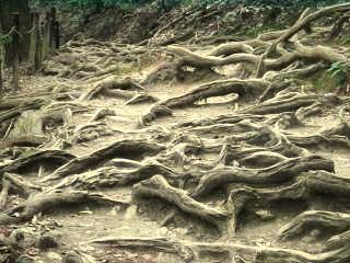 鞍馬寺の本堂、金堂からさらに歩を進める。与謝野晶子の書斎『冬柏亭』(とうはくてい)の横を通り、遮那王堂へ。遮那王とは、源義経の幼少時の名。『木の根道 文武に励む 遮那王の 幻見ゆる 背比べ石』 新つりん和歌集より木の根道下が岩盤の為、木の根が下に延びず、地表に剥き出しになっている。この周辺に遮那王堂、義経背比石、大杉権現社などが点在。少し下ると、天狗と剣術修行したと言われる僧正が谷不動堂がある。たの人よりちょいとばかり霊感があるつりんちゅ。この僧正が谷不動堂にて鳥肌が立つ。定かではないが、私の場合、鳥肌が立つときは神的な感じで、耳鳴りがして、寒気がする場合は霊的な感じだとおもう。さらに木の根道を進み、奥の院魔王殿に出る。眼下に赤、黄の色とりどりに染まる木々に包まれた集落が広がる。九十九に折れた急な下り坂を降りていく。貴船だ。
