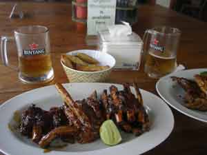 という名前のビストロ・レストランがセミニヤックにあって、結構いつもテーブルが埋まっていて、週末にはライブもあったりとにぎやかな雰囲気なので、いつもいつか行ってみよう~!と思っておりました。水曜日だったため、音楽はなかったものの、とてもいい雰囲気の中お食事ができました。店のマークは、小便小僧なんですけれども、ベルギー人のオーナーの店のようで、メニューもベルギー料理なんか並んでました。で、一応ベルギースペシャリティの中から選んでいただいたのは、これ。グラタン風ハムロールのモルネーソース。これおいしかったです。ベルギーって、たしかあんなに小さい国なのに、ビールの消費量がすごく多い国なんですよね。ビンタンの生ありました。スミニヤック通りは、クンティ通りに曲がる角近くです。小便小僧のサインが目印。 BALI BAGUS ONLINE