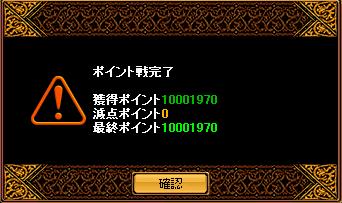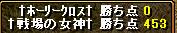 こんばんは。今回は先入れです。参加メンバーは、1BIS+2WIZ+1妨害+3火力です。結果です。序盤は勝っていたのですが、中盤・終盤にかけて数の多さに押され、どんどん失点をしていきました。炎団(R)さんの皆様、対戦をありがとうございます。では、このへんで。追伸Lv400~Lv600ぐらいの人でギルメン募集。