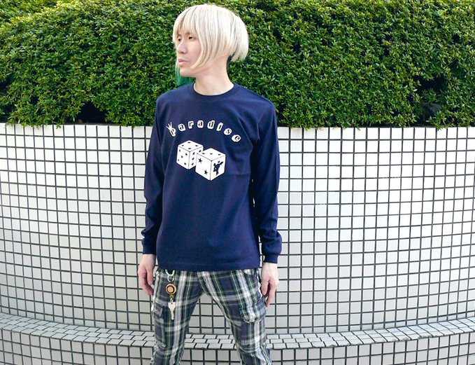 🎲🎲人気のサイコロ デザイン!!プリントが生えるネイビーカラーがイイネ☆程よい厚みのすっきりとしたロングスリーブで制作しました。1枚でもいい感じだし☆インナーとしてもグッドな仕上がりになっています。Paradise(パラダイス)ロングスリーブ Tシャツhttps://item.rakuten.co.jp/bambi/sp041lt/