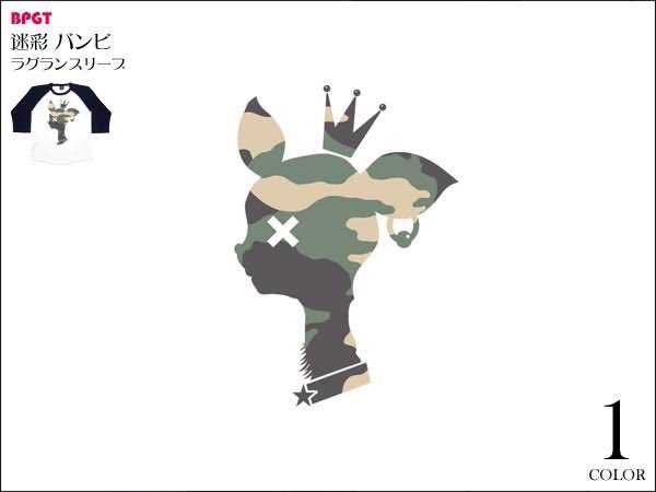 カモフラージュ柄のバンビ「迷彩バンビ」誕生!ポップな中にメッセージが込められているよ♪今回は 3/4スリーブのラグランで制作しました。程よい厚みのすっきりとした3/4スリーブ(7分袖)のラグランタイプ!! 1枚でもいい感じだし☆インナーとしてもグッドな仕上がりだよ。迷彩 バンビ ラグランスリーブTシャツhttps://item.rakuten.co.jp/bambi/sp088rg-whny/