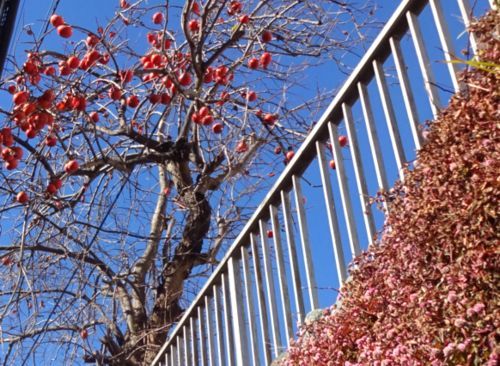 ふと、その上を仰ぐと、柿の木が1本有って、