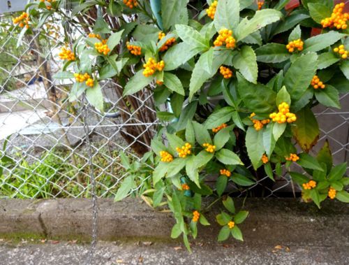 この千両は隣家の敷地に生えていて、隣家の千両ですが、