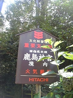 「鹿島神宮が造られたのはいつか」 第一代神武天皇が天皇の位についた年に、神武天皇が鹿島の地に使いを派遣して造られせたと言い伝えられています。一般的には、神代から、人代にかわったときで約2660年前と言われています。 本殿(左)鹿島の古老曰く神功皇后ゆかりの常陸帯が伝えられています。 岩田帯(いわたおび)などの子供が産まれる人が、胎児の保護のために腹にまく布は「5ヶ月目の戌の日からする」と言われています。 これを着帯の祝いと鹿島神宮では呼んでいます。犬のお産は軽いので(安産)これにあやかるためです。 奥宮(中央)江戸幕府の将軍徳川家康公奉納のです。 慶長10年(1605年)に本殿として奉納された建物を元和5年の造営のときに場所を移して奥宮とした安土桃山風の建物です。 天然記念物・神宮の森林(右) 鹿島神宮の使い 神鹿 鹿園(ろくえん) 30数頭の日本鹿がいます。鹿島神宮の神様である武甕槌大神の所へ、大国主神から葦原中国(あしはらのなかつくに)を譲り受けるようにとの、天照大御神の命令を伝えにきたのが天迦久神(あめのかくのかみ)。天迦久神は【鹿の神様】とされているところから、鹿島神宮のお使いが鹿であると伝えられています。神護崇雲元年(西暦767年)に藤原氏は氏神である鹿島の大神を奈良にお迎えし春日神社を創建しました。 その時大神を鹿の背に乗せ多くの鹿を連れ1年がかりで奈良に行きました。その鹿の足跡が残っています!!って・・・・。東京都江戸川区の鹿骨をはじめとして、東海道を三重県の名張まで続いて残っています。。。。??? 地名としてかなあ。。。??(謎)。鹿島の鹿たちは、奈良に移った系統も受け継いでいます。奈良の鹿と親戚同士なんですね。。。・ばんび 取り扱い上の注意