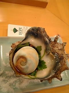 お造りのお皿からはみ出さんばかり。タバコの箱の2倍、2倍。