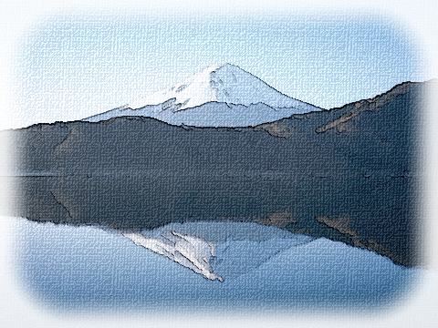 かこう絵、というシェアウエアの画像編集ソフトをVECTORさんで買いました。フィルターも充実してますが、絵を描くためのブラシも充実してるので、結構遊べますね。とりあえずパッとやってみたという程度の画像ですが、富士山の水彩画風の画像を作ってみました。