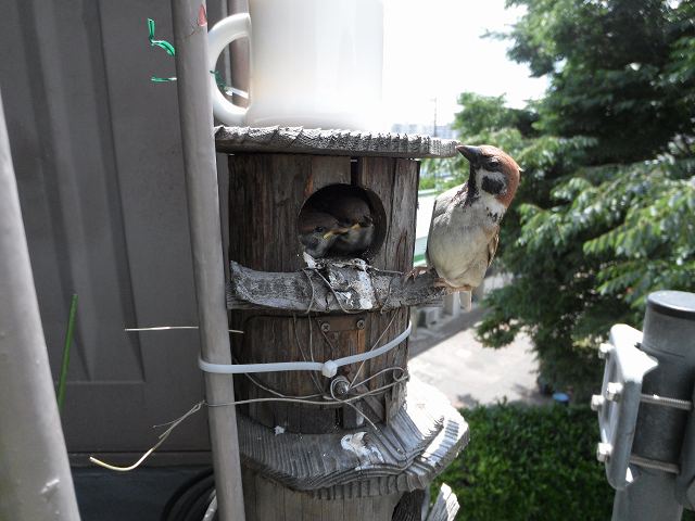 {雀のお宿}の中から、雛の声が聴こえて来ます。