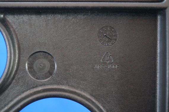 ストック左側には製造年月日と推測される時計のようなマーク(97年4月製造ってことかな)と、強化ABS素材表記(ABS 15GF)、リサイクルマークと思われるマークが入っています。ストックの刻印関係は以上で、モデル名等が無いのは短期的な製作に終わったからでしょう。