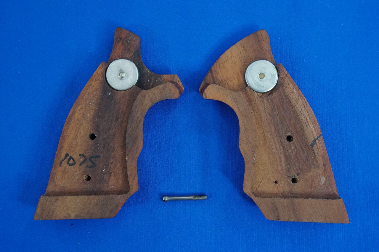 このグリップはオクで入手したジャンク扱いのモデルガンに付属していたもの。特に純正グリップとの明記が無かったので驚くほど安く入手できました。なので100%純正との保証はありませんが、形状やメダリオン、インチネジ等から純正グリップだと判断しています。