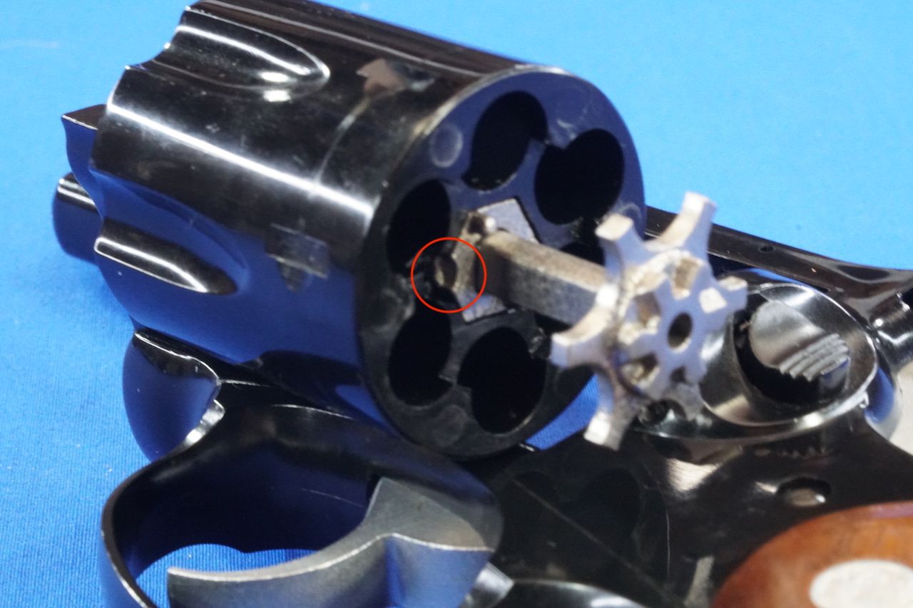 この後シリンダー前方からシリンダーセンターロックピン、スプリング、ピンロッドを入れてからエジェクターロッドをエジェクターにねじ込んで、修理完了です。