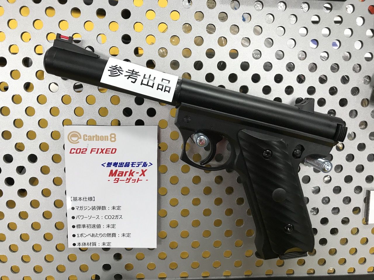 同じく「Honey Bee」さんのブースにあった「Mark-X ターゲット」はルガー22オートのCO2ガスガン。こちらはフィクスドスライドモデルですが、サプレッサー風のブルバレルが良いですね。残念ながら発売するかは未定だそうです。