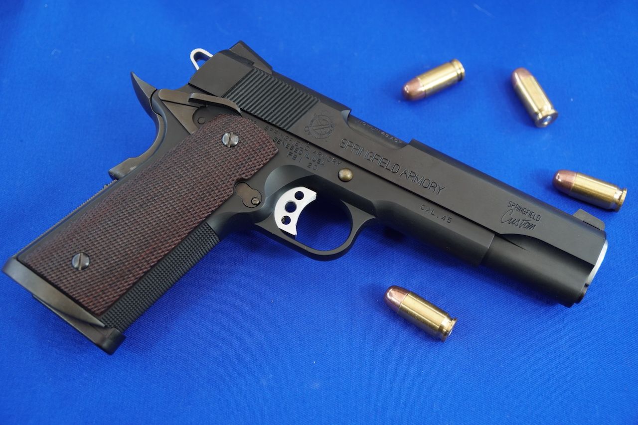 左の加工前と比べて、グリップセフティ下部の出っ張りが2mm弱程少なくなりました。寸法的には大した違いはありませんが、見た目のバランスが違いますね。セフティ機能は若干の遊びがあるぐらいなので、この辺りが妥当なところでしょう。