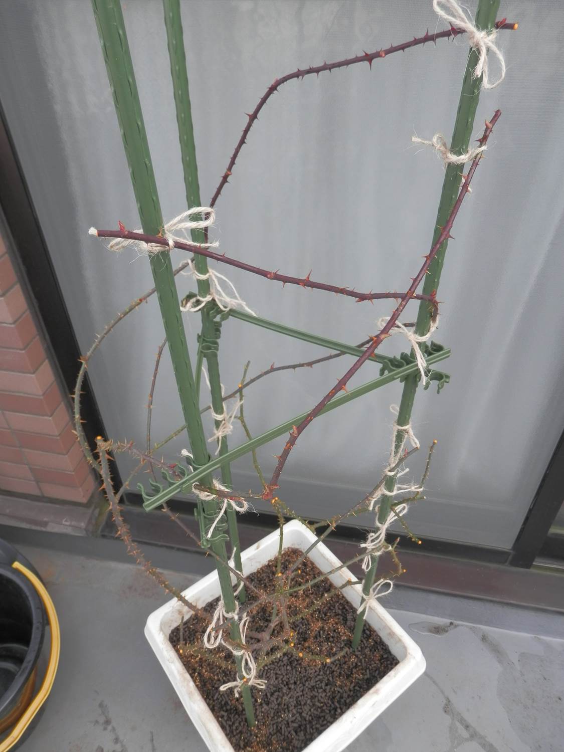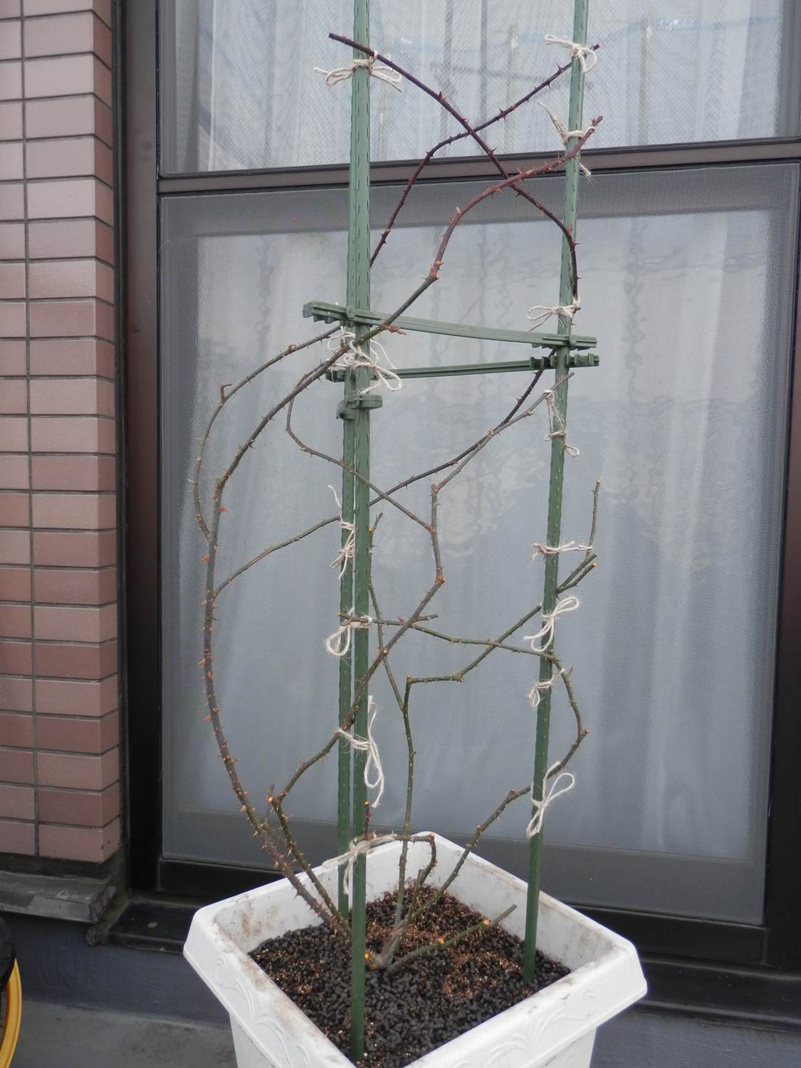 今日は植え替えとオベリスク風な誘引を1株やりました