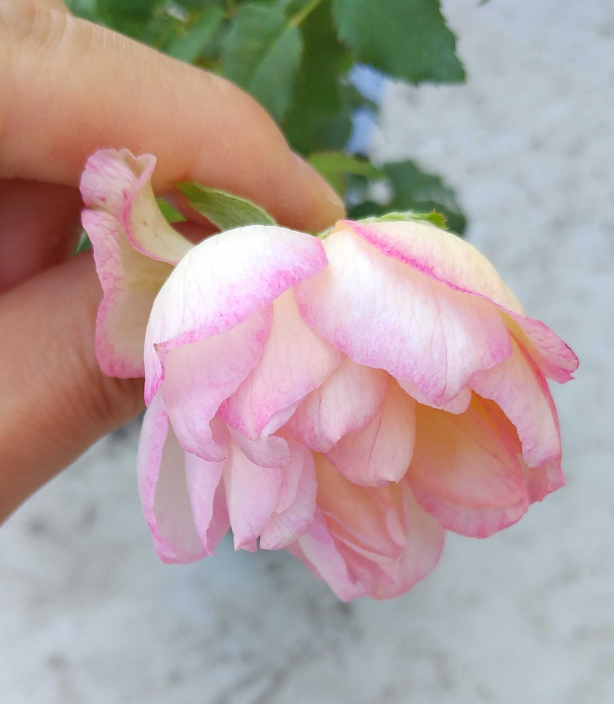 ↓縁がピンク色で可憐な感じ。樹勢が弱いようで、まだミニバラのようにちっちゃいので心配。