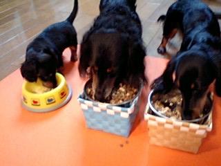 お久しぶりでごじゃります m(__)mいっつもこの出だしになってしまう自分が悲しい・・・ (∪_∪;)しゅん...仕事は相変わらず忙しく、決算作業も終わらないまま、月締めに突入し、残業の日々が続いてますよぉ~などと、グチグチさせてもらいましたが、時々みなさんのところオジャマまして、かわいいワン達を見させてもらって、癒されてました~。 キラ*。・+(*゚∀゚*)+・。*キラ 今、待ち遠しいのはゴールデンウィーク(GW)のお休みでありますウチのほうでは毎年GWに、 ペット博 っていうイベントが開催されていて、我家では、それに行くのがGWの恒例行事となってます。U^・^U U^ェ^Uなんといってもワン同伴OKなのがうれしいです~。ただ今回は、ちょっとモメてます。けろたんのワクチンがまだ終わらないので、けろたんだけお留守番・・・って言ったら、「じゃ、さっちゃんも行かない~」 って言ってるからです・・・年1回のお楽しみなので、みんなで行きたいんだけど、う~~~ん、困ったぁ・・・なんデス。 ~~~~~~~~~~~~~~~~~ 3ワン仲良くご飯・・・のはずなんですけど、この後けろたんはバーディーのご飯を盗みにいって、怒られました~~。 さらに懲りずにノアのご飯も狙いに行って、また怒られました~~ (*´▽`*)にゃははけろたんは自分のご飯が好きじゃないみたいで、困ります。バーディーがあまり食べなくなってきたので、レトルトのささみフレークをカリカリに混ぜてあげていて、ノアも食が細いのでささみ混ぜているので、「アタチのだけいい匂いしないでチュよ~」ってかんじですかねぇ。カリカリも見事に3種類です。(*´▽`*) けろたんはご飯はあまり食べないけど、めっちゃくちゃヤンチャ姫です。遊びたくて遊びたくてしょうがないみたいで、ノアとあまりにすごいバトルをするので、ダンナ様が止めに入るほどですよ~(*^_^*)1番小さいくせに、1番強いと思ってるみたいで、かわいいですぅ~~~~~~~~~~~~~~~~~~~~