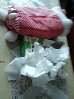おはようございます。 今日も朝からワンズたちは元気です。 いたずら全開でまたまたやらかしてくれました~ ← 証拠写真。 キティーちゃんのカバーの中に入っていたはずのティッシュが もうグチャグチャにされてましたぁ。 実はこんなことしょっちゅうなんだけど、今回こうなるまでの経緯がひどかったんです・・・ ~*~*~*~*~*~*~*~*~*~*~*~*~*~*~*~*~*~ まず、バーディーがテーブルに上がり、ご飯はないかとウロウロ。 バーディーは今お薬のせいもあって、ものすごい食欲です。 いつもテーブルの上を狙ってて、テーブルの上に食べ物おかないようにしていたので、 何もなくて怒ったバーディーがティッシュを振り回し、それが床に落ち、ノアとけろたんの オモチャになったのでした・・・(-_-メ) こうやってイスの間に無理やり顔を突っ込みテーブルによじ登ります。 異常なほどの食欲は、ほんとにお薬のせいなのかしら ~*~*~*~*~*~*~*~*~*~*~*~*~*~*~*~*~*~ 日曜日に病院での超音波検査の結果、水泡や膿胞らしきものは消えているので、 お薬をやめて様子を見ましょうって事になりました。 これで少しは食欲もおさまってくれるといいんだけどなぁ。 もともと食いしん坊の子なので、まだまだ目が離せません。 おばあちゃんには、『バーディー、ボケちゃったんじゃない』なんて言われてます。 チョットそれはないんじゃないって思うけど、それくらい異常な食欲です。トホホ・・・ 怒られた後のワンズ。神妙な顔したり とぼけたり・・・ (≧~≦))プププ