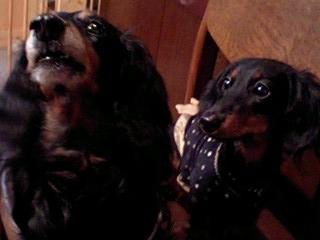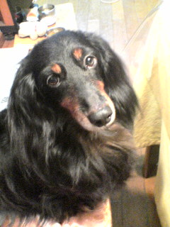 今日はボクが始めて病気になった時のこと、話すね。~*~*~*~*~*~*~*~*~*~*~*~*~*~*~*~*~*~*~*~*~*~*~*~*~ これは、5年位前のボク。首の所に唾液がい~っぱい溜まって、ペリカン?さんみたいになったんだ。ボクたちには唾液腺っていうのが、左右に4つずつあるらしいんだけど、その内の1つが切れて、唾液が皮下にもれたんだ。最初は何でそうなったのか、先生もわからなかったよ。でもあるとき、抜いた唾液と一緒に石が取れたんだよ。ママさんたちの、「おなかに石ができる」っていうのとおんなじなんだって。その石のせいで、唾液腺が切れちゃうらしい。それから3年くらいの間はね、唾液がいっぱい溜まってペリカンさんになると、先生の所に行って、注射器で唾液を吸い取ってもらっていたんだ…麻酔はチョット痛いし、注射するところハゲにされちゃうし走ると首が重いし、あごのせポーズで寝ることができないし…でもね、ボクが一生懸命がんばったから、今ではペリカンさんにならなくなったんだよ。なんで唾液が溜まらなくなったのか よくわかんないけど、とにかく今は治っちゃってるんだ。伸びた首の皮も元通りになったし、ママさんは「再発しませんよ~に」って毎日首をなでなでしてくれるよ。サイハツって何だろうね。~*~*~*~*~*~*~*~*~*~*~*~*~*~*~*~*~*~*~*~*~*~*~*~*~