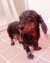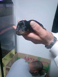 今日もメッチャいいお天気ですよ~暑くてクーラーかけてるもんね今日はワン達の小さい頃を紹介しま~す。~~~~~~~~~~~~~~~~これはけろたん。 初めてけろたんを見に行ったときの写真ですヨ。生後10日くらいだったのかな。一目惚れでこの子に決まりって事に。4兄弟なんだけど、けろたんだけブラタンで、ウチはみんなブラタン大好きだからかな。ちなみに、けろたんの兄弟は今、ダンナのお兄さんちにいます。ウチに来たときが1.2キロ、今は2.1キロです。でも兄弟の中で1番チビさんです。 これはノア。3ヶ月めくらいの時かな。 けろたんと良く似てるでしょ。でもノアの方がやせっぽちで目が大きいです。これが最近のけろたん。 家族以外の人には区別つかないと思うけど・・・ おまけのけろたん今(1歳3ヶ月)のノア ノアは相変わらずやせっぽちです。バーディーと同じくらい身長があるのに、まだ3.8キロです。ねねちゃんは「お父さんがカニンヘンだから」って言ってるど、そうなの頑張らないと、けろたんに負けちゃうよ~~~ 最後はバーディー。なんだけど、バーディーがウチに来たのは11年も前なので、まだデジカメとか持ってなくて、載せられる写真がないんです~と、いうことで~、今ここにある1番お気に入りの写真です。 「ぼく、いい子だから早くおやつちょうだいな」攻撃をしてるところ。おやつを前にすると目がキラキラ それは今も変わらないな。 小さい頃からの写真を並べるのって、なんか楽しいですよ~。時間があったら、みんなのワン達のパピたん時代見せてくださいな。