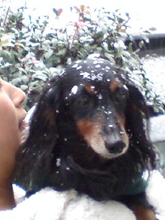 昨日は久しぶりに雪が降り、寒かったですねぇ。うちの方は午後には雨になっていたので、雪はすっかりなくなっていました。我が家のわんこたちは雪が初めて。さぞかし喜ぶだろうと、外に連れて行ってあげると、震えるばかりで、雪の上に降りようとしません。やっぱり小型犬は寒さには勝てないようです。♪い~ぬは喜び庭かけまわり・・・♪なんて、うそでしたぁ。