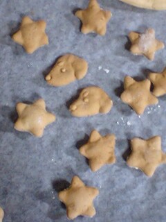 お久しぶりでごじゃります。 (^^ゞ 1週間以上更新していなかったことに、さっき気づきましたデス・・・┐( -"-)┌ やれやれ 仕事が忙しく、全く余裕のない毎日でして、 いったい誰が決算なんて考えたんでしょ(恨んでやる~~~) 毎年この時期はボヤキまくってるので、 みんなには 「またかぁ~」~~~((( -_-) って顔されてます・・・ そんなわけで、さっちゃんがワン達の相手をしてくれてます。 (今、春休みなもんで) で、ワン達にクラッカー焼いてくれました。 「もうほんとに、なんて優しい子なんでしょう また作ってね」 と しっかりお願いしちゃいました。 (*^O^*)p v(*^o^*)v 決算終わったら、おいしいものた~くさん作ってあげる(予定だ)からね。(-.-)b