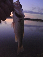 本日AM3:00起床、AM3:30出発で某ダムへ行ってきましたダムの水位ですが前回に比べ約3m程の減水・・・(あれから一週間も経ってないのに。)いつもながらこのダムの水位の管理ってどうなってるのだろうか??超減水と思ってたら今度は思いっきり増水してたりと・・・よくわかりましぇ~ん朝一はTOPオンリーで探ってみましたが全く反応なし。今日も暑くなりそうだったので早めに結果を出す為に常吉へチェンジ♪(やはりツネラーの私です・・・)しばらくして2匹HIT♪ サイズは小さいけど釣れてホッとしました。で、この後に余裕の40UPが釣れたのですが取り込む寸前にラインブレイク・・・最悪じゃぁ~それから9時ぐらいまでこのダムで粘りましたが全然反応が無くなったので近くの野池に移動しました。(かれこれ2年以上は行ってない野池です。)小さな見えバスが居たので何気にクランクを投げて見ると食ってきました。ルアーより若干大きめの小バスです。。。次はまたツネラーに変身して小バスハンターに! 小さいのがいくらでも釣れちゃいます。この野池、大きいのは居ないのかなぁ・・・最後に釣れた1匹、30cmも無いけどお腹がパンパンで重たかったです。こいつがこの池の主!?そんな訳ないですよね。10時頃には暑さも限界だったので終了。。。ポカリをガブガブと飲んで帰りましたぁそれにしても早く涼しくならないですかねぇ・・・では ポチっとお願いだワン