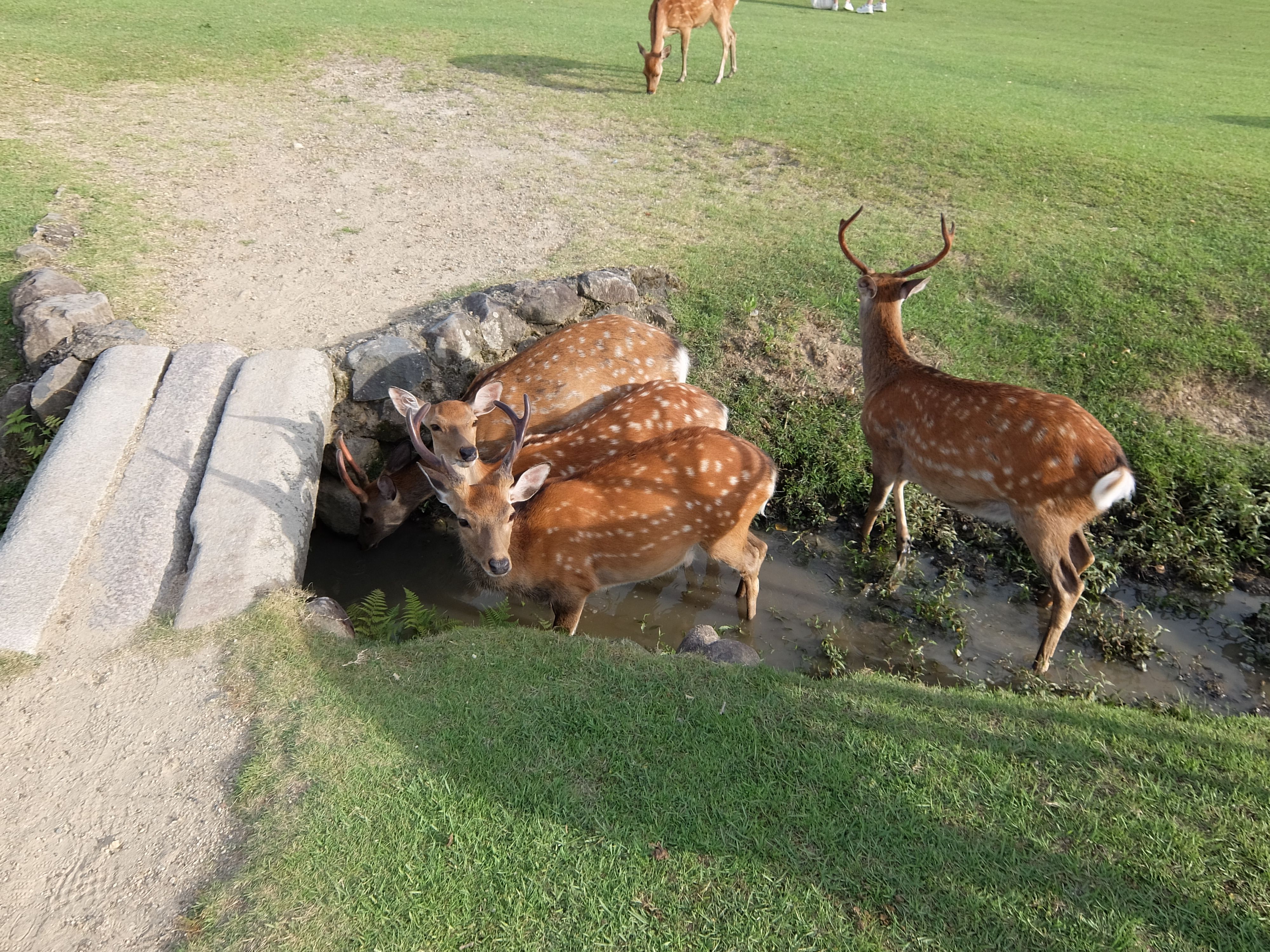 奈良公園の草原で