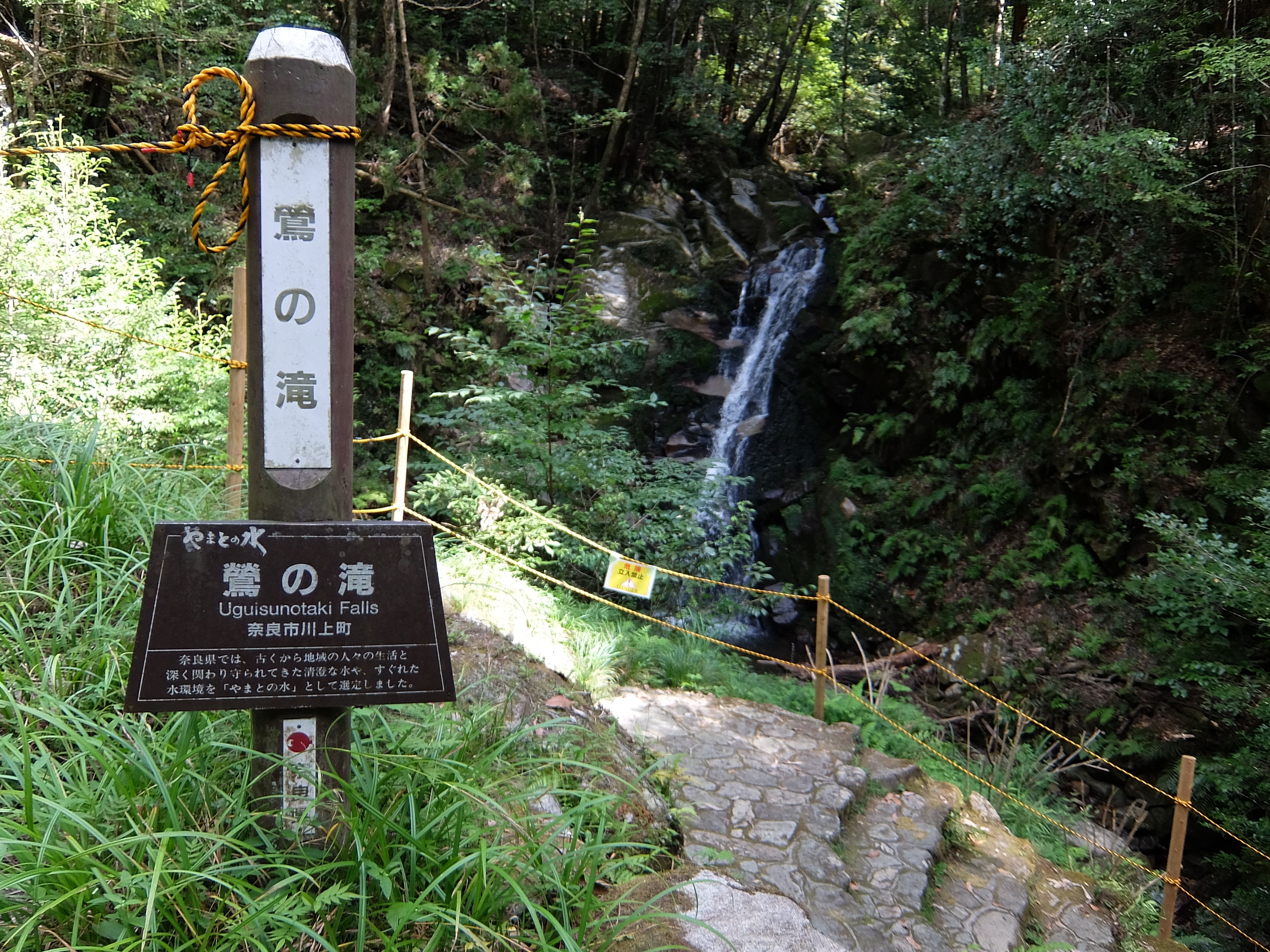 『鶯の滝』は駐車場から3分位階段を降りたところにあります。