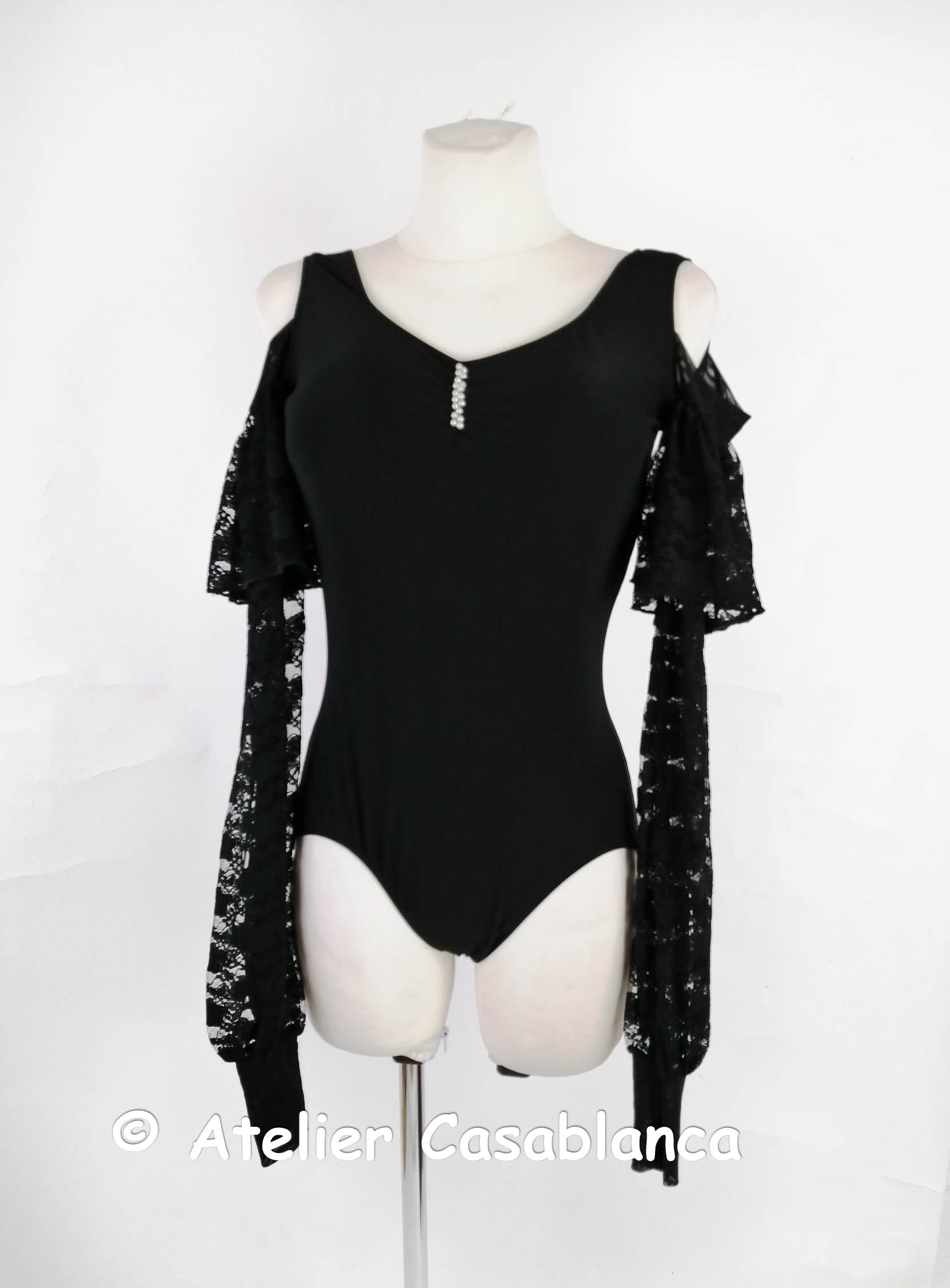 ブラックプールファイナリストのタイトルを持つ超素晴らしいウクライナのユーススタンダード選手のためにウクライナでフルオーダーで制作されたオフショルダー、袖のレースのデザインが大変美しい黒の一点物のレオタードです。ボディ部分は大変ストレッチ性が強い美しいストレッチジャージー素材で作られており、前身ごろにはベージュのライクラを重ねているので透けません。ブラカップは内蔵されています・胸元のパールがアクセントになっており、肩ひもはありますがオフショルダーになったデザインなのでホールドした時のラインがとてもきれいです。袖のレースづかいが大変美しく、二の腕のラインのフリルはホールドのラインを大きく見せ、ゆったりした袖が腕を細く見せます。袖口は絞られているデザイン。レースの柄が美しく浮き上がります。背中は開いていますがブラカップが内蔵されているので安心してご着用いただけます。ストレッチ性が非常に強く、若干大き目のつくりなのでサイズは9-11号です。6500円です。ウェブサイトに引っ越しておりますが、掲載内容はウェブとブログとまったく同じです。こちらのブログには引き続き新着情報を掲載していきます!インスタグラムはこちら: Ateliercasablancagermany どのサイトからお申込みいただいても大丈夫です。メールでのご連絡でも大丈夫です。下記のロゴをクリックしてください。こちらからもご試着お申込みいただけます:申し込みフォームからうまく送信できない場合には、casablanca.germany@gmail.comにご連絡ください。