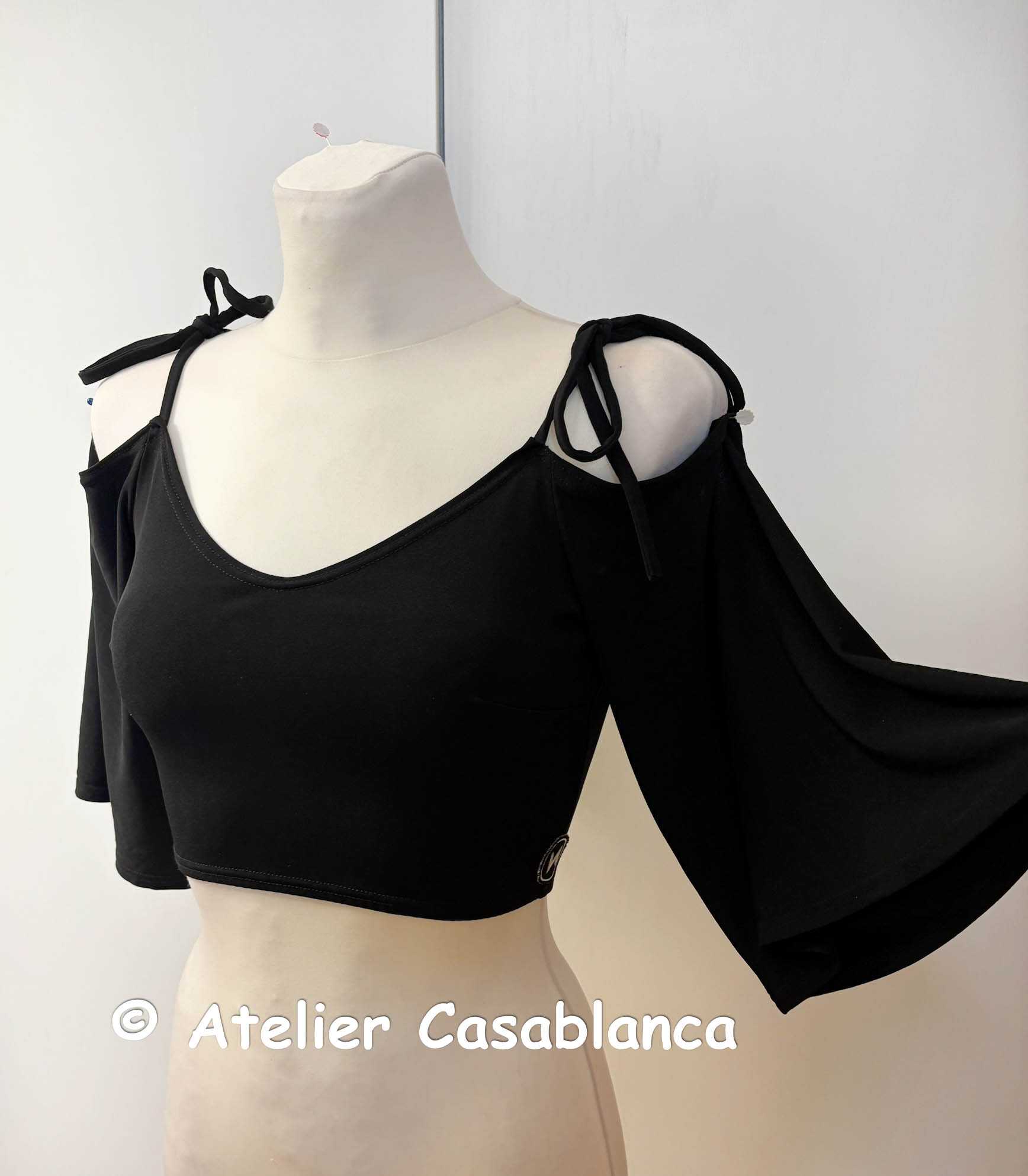 ハンガリー製の大変スタイル良く見えてとても涼しいオフショルダー、流行のショートタイプのカットソーです。ウクライナのトップ選手の所有ですが、ほぼ着用していないほとんど新品。(サイズが大きかったとのこと)肩ひもをリボンで結ぶデザインで、オフショルダーなのでホールドしたラインがとてもきれいに見えるデザイン。流行のショート丈なので、ハイウェストのパンツと合わせて足長でウェストを細く見せる視覚効果のある大変カッコイイデザインです。普通のストラップがあるブラが着用できる構造になっています(肩ひもが黒のもの推奨)。サイズは9号で、強いストレッチ性があります。4900円です。ウェブサイトに引っ越しておりますが、掲載内容はウェブとブログとまったく同じです。こちらのブログには引き続き新着情報を掲載していきます!インスタグラムはこちら: Ateliercasablancagermany どのサイトからお申込みいただいても大丈夫です。メールでのご連絡でも大丈夫です。下記のロゴをクリックしてください。こちらからもご試着お申込みいただけます:申し込みフォームからうまく送信できない場合には、casablanca.germany@gmail.comにご連絡ください。インスタグラムからのダイレクトメッセージですとすぐに返信が可能です。