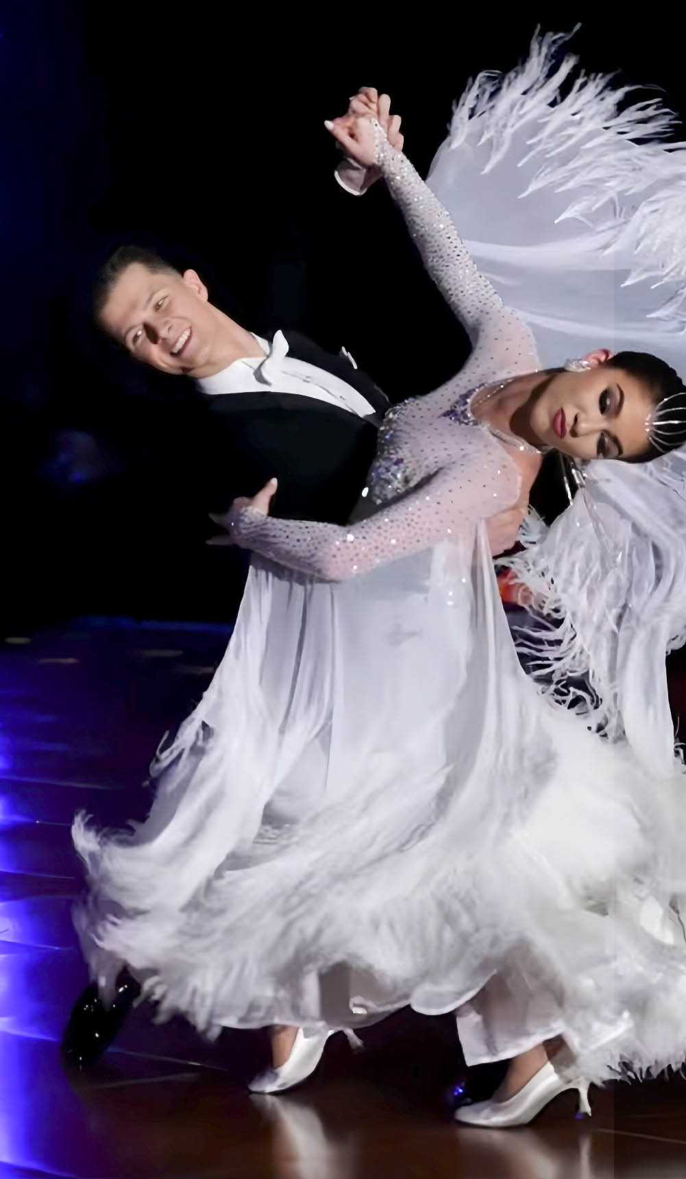 イタリアのラグジュアリーダンスドレスブランドで、世界ファイナリストや長年世界チャンピオンだったロシアのオルガ・クリコワ選手など多くのトップ選手のドレスを制作している「RSアトリエ」がドイツのファイナリスト、セリーヌ・セイディアイ選手のために制作した、赤と白のコントラストが大変美しい長袖のスタンダードドレスです。2025年12月にNetflixで公開される話題のダンス映画、「10 Dance」の競技会シーンにて、セリーヌ選手が着用しているので、テレビでもご覧いただくことができるようになります。白のストレッチメッシュ素材、ストレッチライクラ素材、オーガンジー素材を使って制作しており、斜めのドレープやありんめとりーなライン、豪華でびっしりの石など、イタリアらしいコントラストの大変美しいデザインのドレスです。競技会の写真では全体に立体的なバラの花のオーナメントを使っていますが、コーチャーの指示でハンドメイドのオーガンジーのお花に変更され、またリーダーの動きの邪魔になったフロントサイドのお花はミラーと大きな石に変更されたのでより強く輝くようになりました。ドレス全体にオーロラのプレチオサの石と赤のプレチオサの石が豪華に美しく装飾されており、写真よりも実物の方がかなり強く輝くドレスです。ハンドメイドのオーガンジーのお花のオーナメントはすべてスナップボタンで取り外せる構造になっています。大きなフロートは使用はされませんでしたが、WDCでの試合用に付属しており、スナップボタンで取り外しが可能。オーストリッチの羽と赤のオーガンジーのお花のオーナメントが美しい袖の飾りはグローブタイプになっていて袖の上に着用する構造になっています。スカートはオーガンジーのアンダースカートの上に光沢が美しい透けないストレッチライクラ素材のオーバースカートを重ねた二重構造。スカートの切り替えのラインが上の方にあり、ヒップラインがとてもきれいに見えてスカートの動きも大変素晴らしく、またとても身長高くスタイル良く見える美しいデザインです。背中はかなり大きく開いている、今大変人気のあるスタイリッシュなデザインです。開きが気になる方は、チェーンなどがついた石のアクセサリの着用またはベージュネットを張るリフォームなどがおすすめです。たわむように赤の石のチェーンをつけるリフォームなども素敵だと思われますが、リフォームが必要な場合には国内で安価で丁寧にお直しできる方をご案内いたします。後ろにファスナーがあるデザインで、ストレッチ素材の9号。スカート丈はウェストから約87センチで、身長157センチ以上の方に対応する長さがあります。最初についていた赤のお花による若干の色移りがあったため、色が落ちないハンドメイドの取り外し式のオーナメントおよび石とミラーびっしりの装飾に変更されています。赤の装飾がある部分の布が少し赤くなってしまっているところがありますが、そもそも赤が入っているのであまり気にならないと思います。きれいにクリーニングされており、RSでメンテナンスを行ったので石落ちはありません。ドレスは日本にありますので、ご試着をご希望の場合にはすぐにご案内可能です。17万9千円です。ウェブサイトに引っ越しておりますが、掲載内容はウェブとブログとまったく同じです。こちらのブログには引き続き新着情報を掲載していきます!インスタグラムはこちら: Ateliercasablancagermany どのサイトからお申込みいただいても大丈夫です。メールでのご連絡でも大丈夫です。下記のロゴをクリックしてください。こちらからもご試着お申込みいただけます:申し込みフォームからうまく送信できない場合には、casablanca.germany@gmail.comにご連絡ください。LINEはこちらです。ご質問がございましたらご連絡ください。Wifiがあるところでしか確認できないので、タイムラグが生じることがあります。