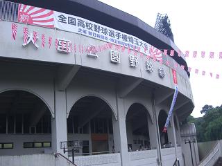 昨日ちょっと書きましたが、埼玉全球場制覇をしたいと思ってます。BBMの球場物語という本に載っている球場18球場を対象とし、レポートとして記録します。しばらくは過去に撮ってある画像を載せていきます。今日は大宮公園球場編。【所在地】さいたま市大宮区高鼻町 4-9 【両翼】99m 【中堅】122m 【収容人員】20,500人 【アクセス】東武野田線・大宮公園駅から徒歩15分 (僕はチャリですがね。)言わずと知れた埼玉アマ球界の甲子園です。あの、ベーブルースやゲーリッグを中心とした世界最強チームと全日本の試合を行われたこともある、歴史のある球場です。画像は今年の夏の高校野球埼玉大会の開幕戦です。ちなみに決勝が行われるのももちろんこの球場。野球漫画のMrフルスイングや大きく振りかぶってにもよく登場しますね。今年はなんとプロ野球・埼玉西武ライオンズが公式戦を開催します。(6/27vsロッテ)僕の自宅からも近く、高校野球はよく観戦します。というわけで第一回は埼玉を代表する球場である埼玉県営大宮球場をとり上げました。ちなみに通常は外野席は開放していません...傾斜が凄いので観戦は不可能なのかな。外野を除くと実質17000人しか収容不可能。プロ野球が開催されるということでどうなるのかな?(そんなに入らないから大丈夫って感じなのかなぁ)