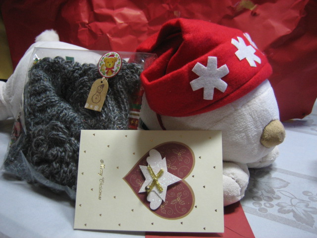 メープルちゃんから届いたはあの【ネックウォーマー】と、かわゆい【ヌイグルミ枕】【X'masカード】ですぽっ