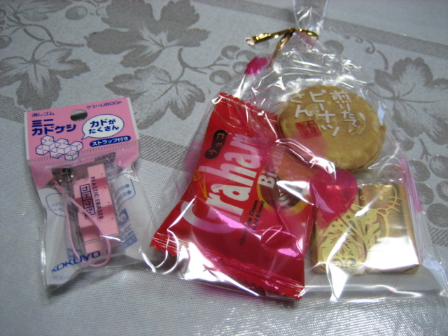 美味しいお菓子と消ゴムが入ってましたスマイル
