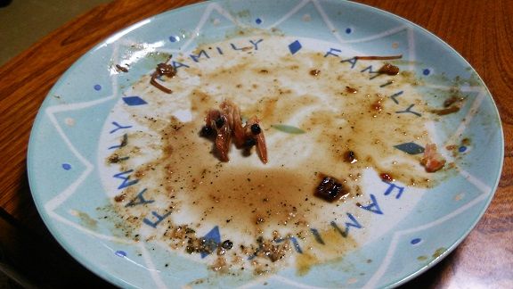 片栗でトロミをつけ、仕上げでごま油を多めにぶっ掛けました