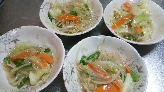 チンゲン菜、もやし、ニンジン、キャベツの炒め物