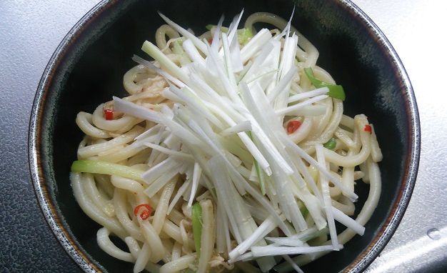白ネギ中1本は千切り 緑の部分は火を通してネバリ成分をだす。白い部分は半分を生でビタミンなどを優先しました