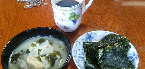 みそ汁 洋子さんが作った昨夜の残り 里芋 わかめ 白菜