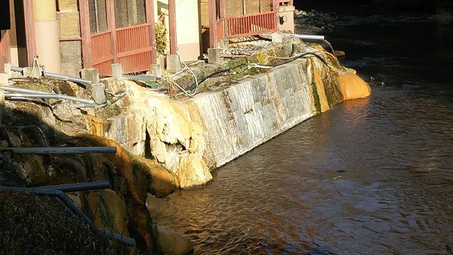 川の名前は知りませんが、川にも温泉が湧き出ているので放流している
