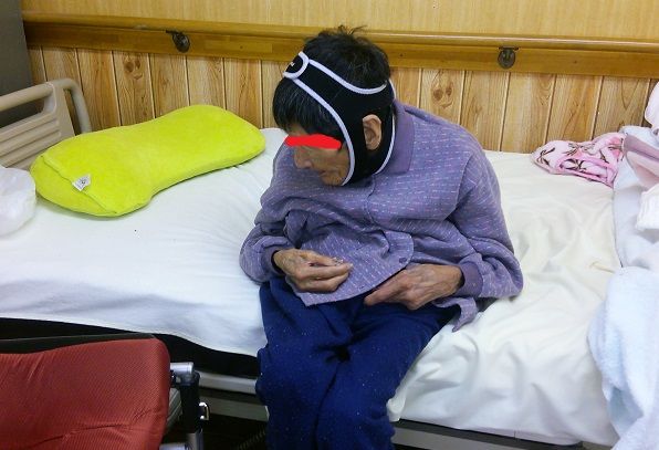 多くの方に膝折れと背骨の変形が見られるがMさんはパーキンソンだ